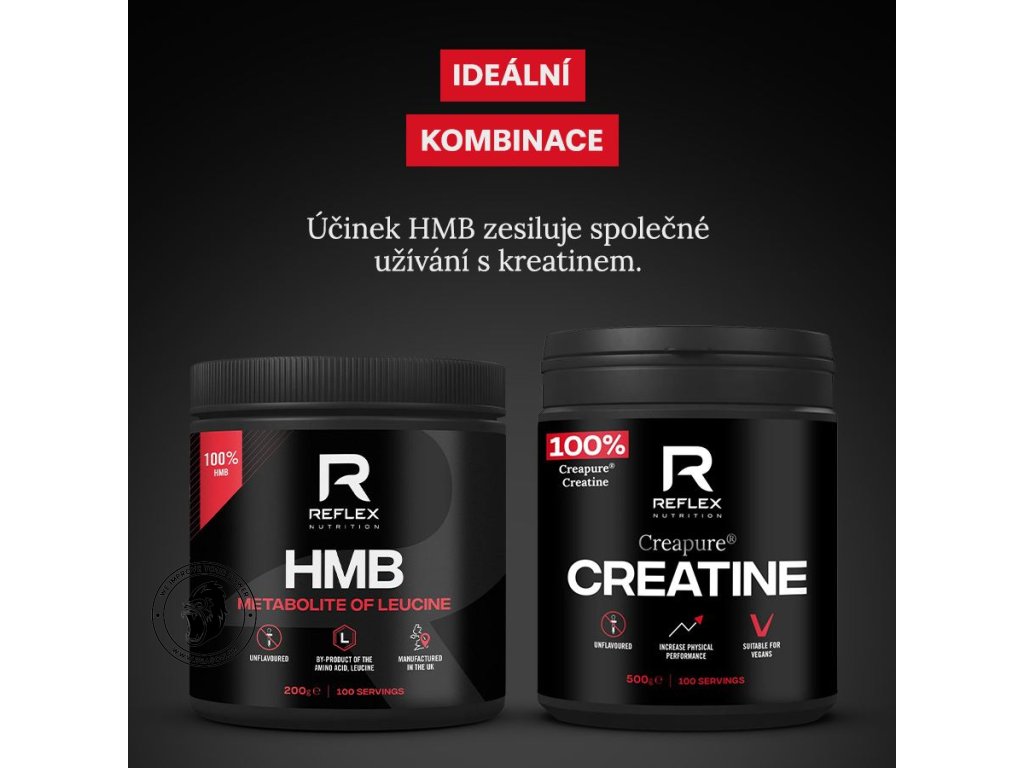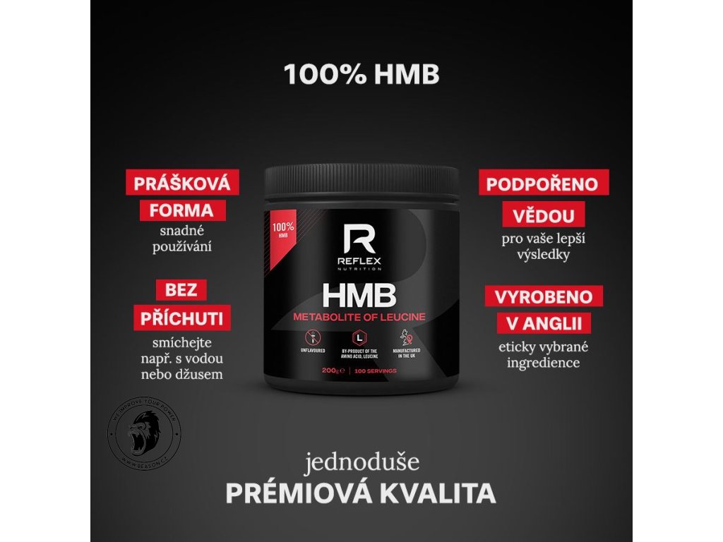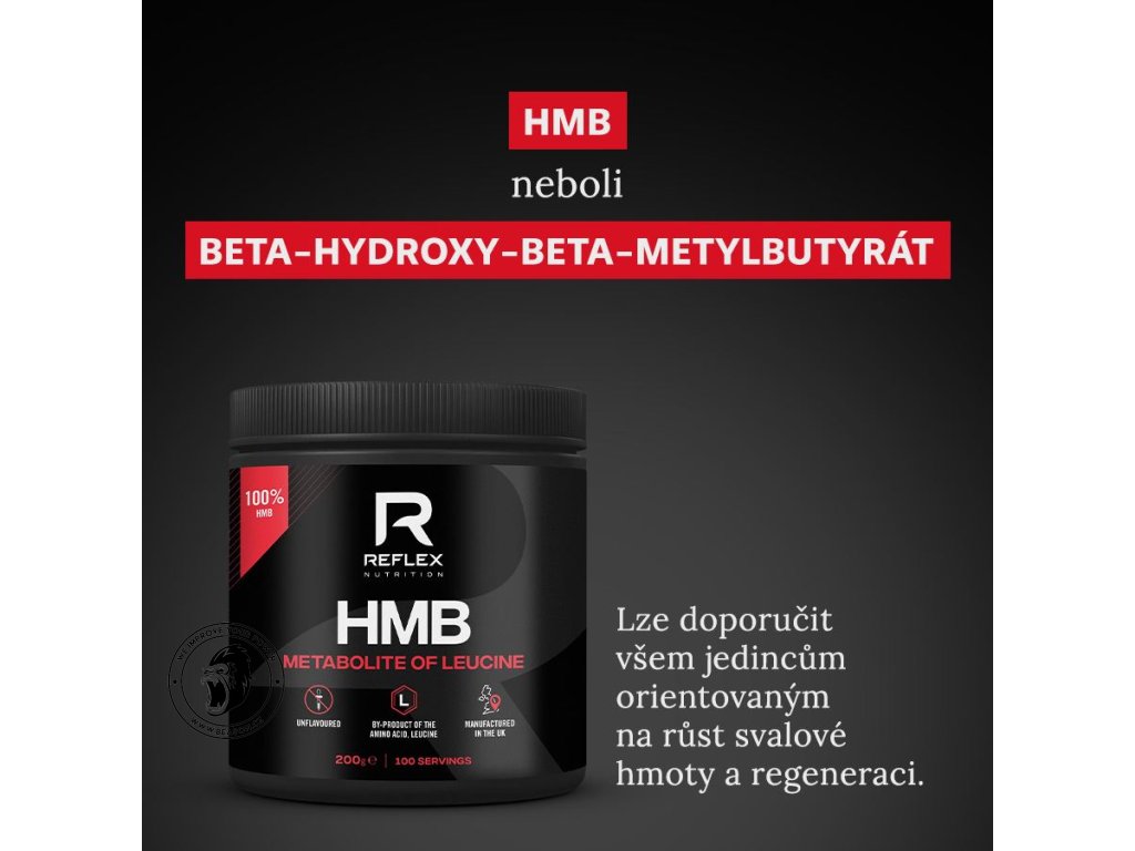 HMB neboli beta-hydroxy-beta-metylbutyrát je dobře známým doplňkem, který lze doporučit všem jedincům orientovaným na růst svalové hmoty a regeneraci. Sám o sobě je velice účinný a efekt lze posílit i v kombinaci s jinými doplňky. Jde o metabolit aminokyseliny leucin, který je v malém množství přirozeně vytvářen v těle při proteinové syntéze. V malém množství se také vyskytuje v grapefruitu, vojtěšce nebo masu sumce.