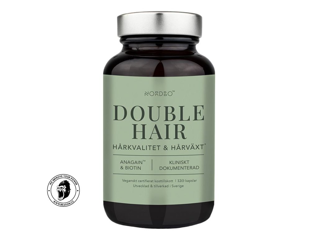 Nordbo Double Hair je velmi precizně zacílený doplněk stravy kombinují patentovaný extrakt AnaGainTM z BIO hrachových klíčků s vysokou dávkou biotinu. Vlastnosti těchto dvou složek jsou synergní a souvisejí se stimulací vlasových folikul, redukcí ztráty vlasů a jejich kondicí. AnaGainTM je speciální extrakt z hrachový klíčků, které jsou bohaté na složky aktivující buňky ve vlasových folikulech. Obnovují v nich mikrocirkulaci živin. Vlastnosti biotinu souvisejí s produkcí keratinu, který zvyšuje kvalitu vlasů. AnaGainTM byl testován v klinické studii s jedinci trpícími středně závažným vypadáváním. Po dvou měsících se snížila ztráta vlasů o 37 % a došlo k viditelnému zpevnění vlasových vláken.