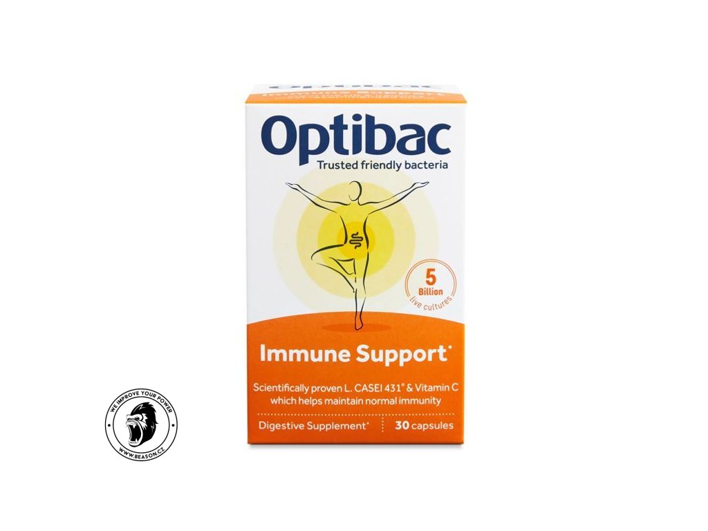 Optibac Immune Support obsahuje druh probiotik Lactobacillus paracasei CASEI 431® a přidaný vitamín C (80 mg v 1 kapsli). Doplněk je určený pro podporu obranného štítu a obnovu mikrobiomu. Hodí se pro muže i ženy, lze jej užívat v období nemoci, při vysoké zátěži, při rekonvalescenci nebo kdykoli, kdy cítíme, že organismus potřebuje pomoci.