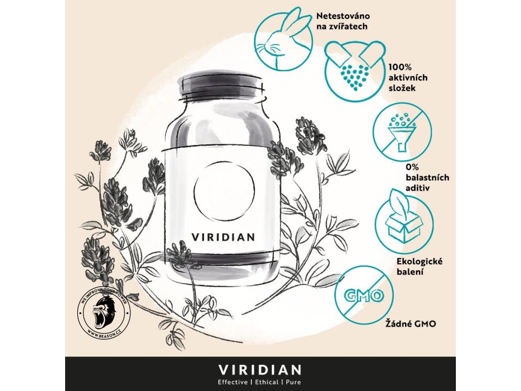 Britská značka Viridian Nutrition nabízí tzv. etické vitamíny a doplňky stravy, zaměřené na tři hlavní oblasti: kvalita/čistota, charita, životní prostředí. 99% produktů značky Viridian Nutrition splňuje požadavky náročné kategorie čistoty KOSHER, všechny produkty jsou 100% bioaktivní, v kapslích rostlinného původu, bez použití problematických aditiv, 40 % produktů je oficiálně certifikováno jako 100% organické (Soil Association). Všechny složky pocházejí z absolutně čistých zdrojů = NE genetické modifikace, NE ozařování, NE tablety, 5% z každé prodané položky je investováno na charitativní účely.